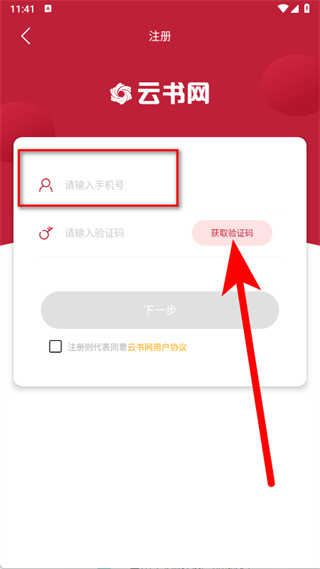 4、在注冊頁面,輸入手機號,點擊獲取驗證碼。