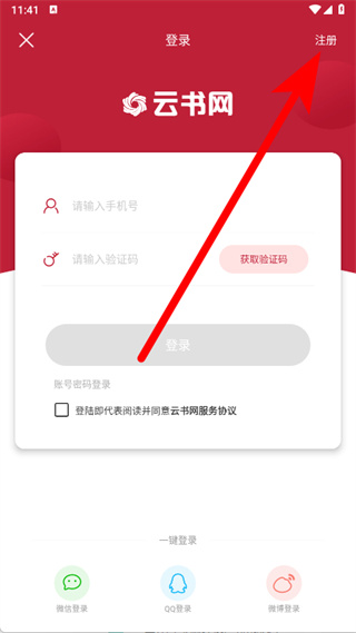 3、進入登錄界面,點擊右上角注冊,進入注冊頁面。