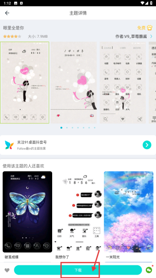 4、在主題詳情頁,點(diǎn)擊下載按鈕,完成該主題的下載操作。