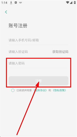 4、在賬號(hào)注冊(cè)頁面,輸入密碼,勾選同意相關(guān)協(xié)議后點(diǎn)擊注冊(cè),完成賬號(hào)注冊(cè)。