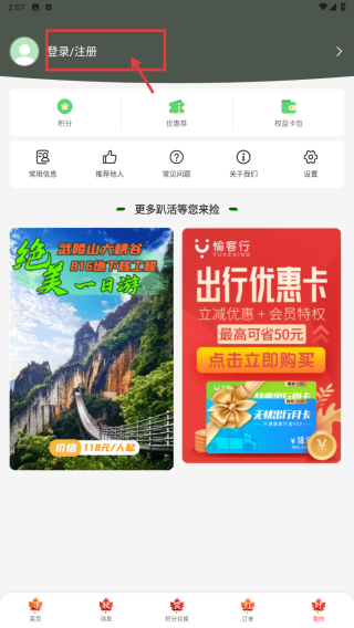 2、在個人中心頁面,點擊登錄/注冊選項,進(jìn)入登錄界面。