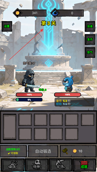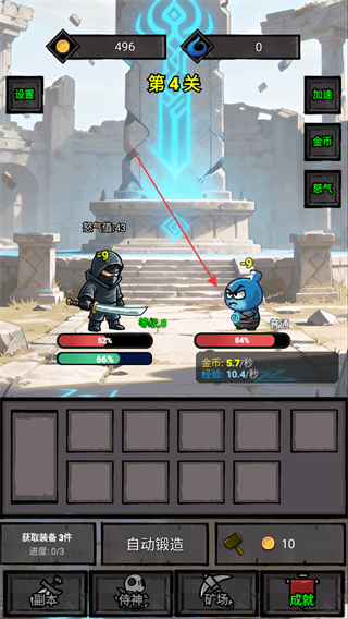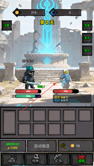 4、利用戰(zhàn)斗獲得的金幣和經(jīng)驗提升角色等級與戰(zhàn)力,解鎖更多戰(zhàn)斗技能,體驗一個人的戰(zhàn)意戰(zhàn)斗旅程。