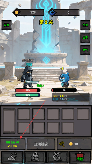 2、戰(zhàn)斗中可觸發(fā)閃避等機制,提升戰(zhàn)斗效率,同時積累金幣和經(jīng)驗。