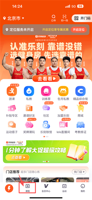 1、打開(kāi)健身類應(yīng)用,點(diǎn)擊底部課程選項(xiàng),進(jìn)入課程頁(yè)面。