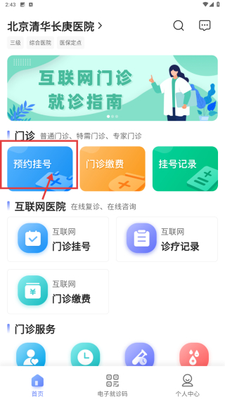 1、打開醫(yī)療類應用,點擊預約掛號選項,進入選擇科室頁面。