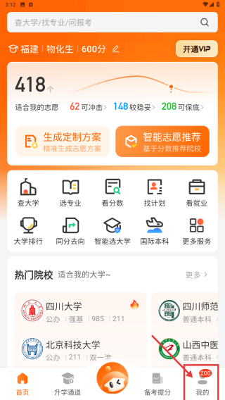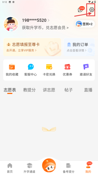 1、打開高考志愿類應(yīng)用,點(diǎn)擊底部我的選項(xiàng),進(jìn)入個(gè)人中心頁(yè)面。