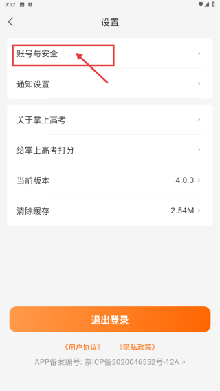 4、在賬號(hào)與安全頁(yè)面,點(diǎn)擊注銷賬號(hào)選項(xiàng),發(fā)起賬號(hào)注銷操作。