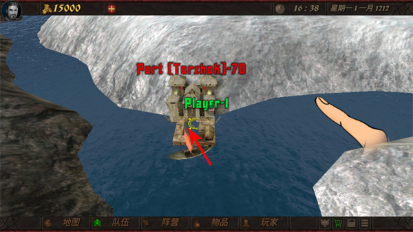 3、游戲中操控角色朝著港口方向移動(dòng),可進(jìn)入港口區(qū)域,在港口中可進(jìn)行貿(mào)易操作,推動(dòng)游戲發(fā)展。