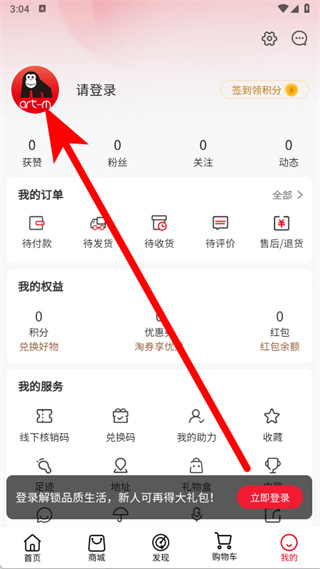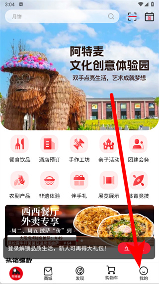 1、打開阿特麥商城,點擊底部導航欄的我的,進入個人中心頁面。
