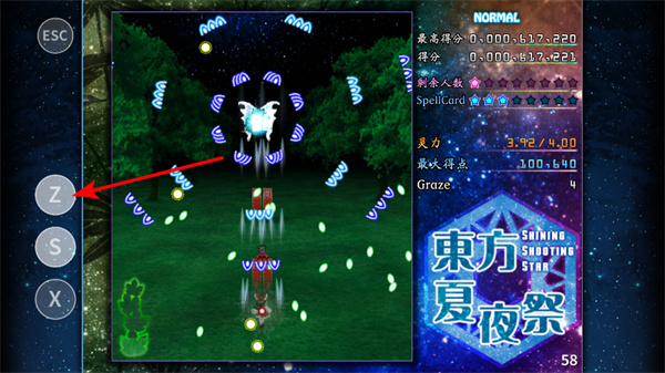 3、點(diǎn)擊Z鍵,可發(fā)射普通彈幕攻擊敵人,這是戰(zhàn)斗中的主要輸出方式,通過持續(xù)攻擊可消滅敵機(jī)。