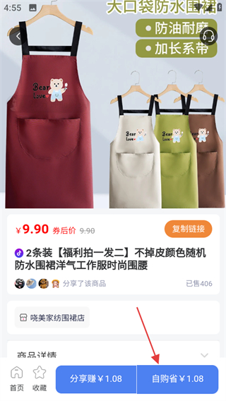 3、在商品詳情頁面,點(diǎn)擊自購?。?.08可完成該商品的購買操作。