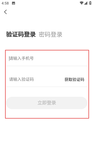 3、在驗(yàn)證碼登錄頁面,輸入信息后點(diǎn)擊立即登錄可完成賬號登錄。
