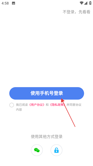 2、在登錄頁面,點(diǎn)擊使用手機(jī)號登錄可進(jìn)入驗(yàn)證碼登錄頁面。