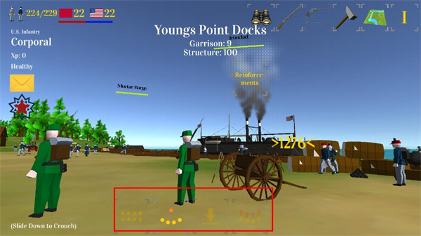 以維克斯堡戰(zhàn)役為核心,深度還原了戰(zhàn)役中的關(guān)鍵地點(diǎn)、兵種和戰(zhàn)術(shù),從港口的蒸汽船、炮臺(tái)到戰(zhàn)場(chǎng)的工事,細(xì)節(jié)刻畫力求貼合歷史,讓玩家在游戲中能直觀的感受到戰(zhàn)爭(zhēng)氛圍。