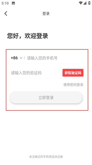 4、在手機號驗證碼登錄頁面,輸入信息后點擊立即登錄可完成賬號登錄。
