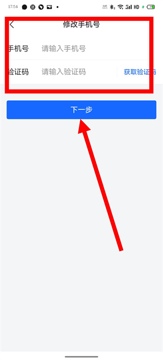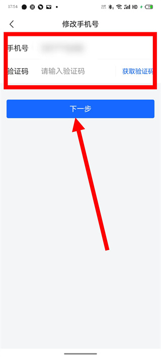 4、輸入新手機(jī)號(hào)及驗(yàn)證碼,點(diǎn)擊下一步,完成手機(jī)號(hào)修改。