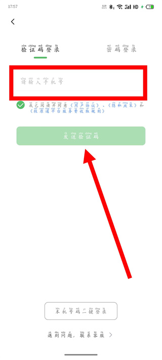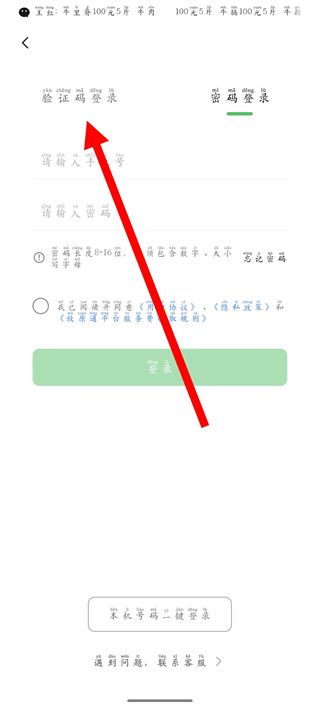 2、在登錄頁(yè)面,點(diǎn)擊驗(yàn)證碼登錄,切換至驗(yàn)證碼登錄模式。