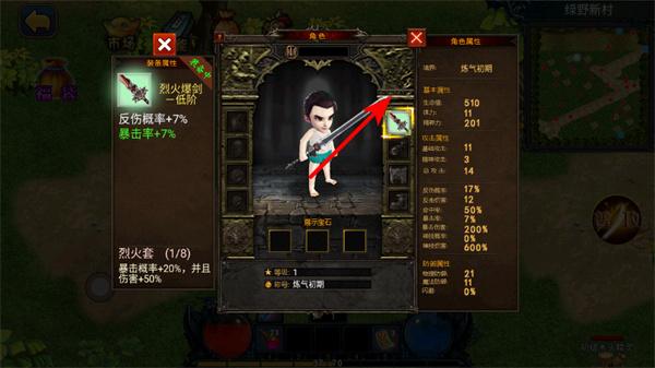 2、在角色界面,點(diǎn)擊裝備欄可查看或更換裝備,更換強(qiáng)力裝備能提升角色屬性,增強(qiáng)戰(zhàn)斗能力。