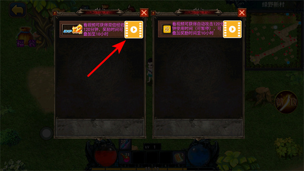 4、遇到獎(jiǎng)勵(lì)彈窗時(shí),點(diǎn)擊播放按鈕可獲取相應(yīng)獎(jiǎng)勵(lì),這些獎(jiǎng)勵(lì)能為角色提供資源或增益,助力發(fā)展。