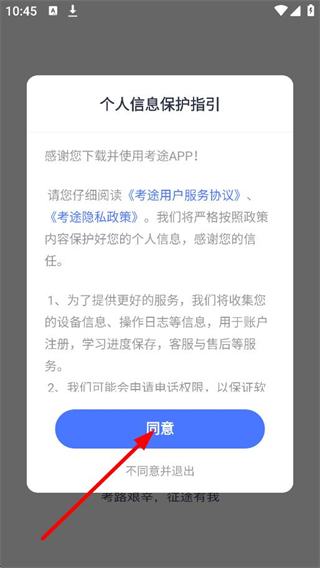 1、在個(gè)人信息保護(hù)指引彈窗中,點(diǎn)擊同意,進(jìn)入登錄頁(yè)面。