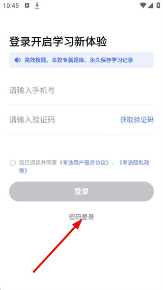 2、隨后我們?cè)诘卿涰?yè)面,點(diǎn)擊密碼登錄,進(jìn)入密碼登錄頁(yè)面。