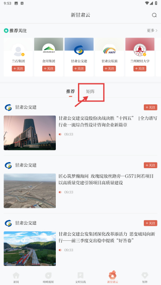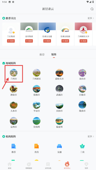 2、在新甘肅云頁面,點擊矩陣分類選項,進(jìn)入矩陣頁面。