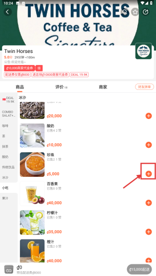 3、在商家商品頁面,找到目標商品如百香果條目,點擊其右側的+按鈕。