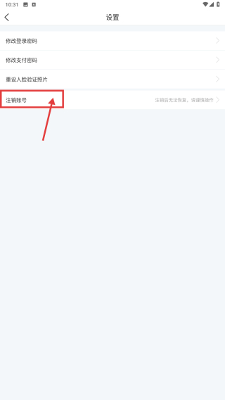 4、在賬號與安全頁面,點(diǎn)擊注銷賬號選項(xiàng),發(fā)起賬號注銷操作。