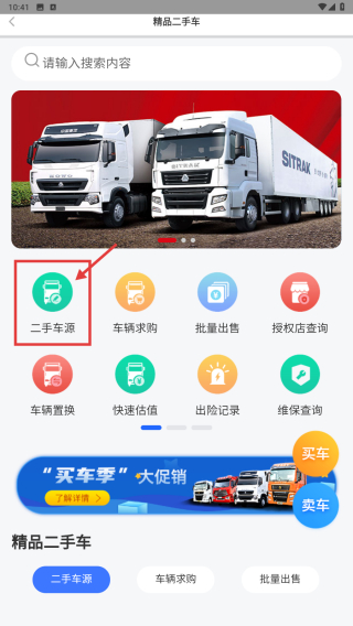1、打開二手車交易類應(yīng)用,點(diǎn)擊精品二手車選項(xiàng),進(jìn)入精品二手車頁(yè)面。