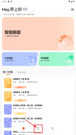 1、打開學(xué)習(xí)類應(yīng)用,點(diǎn)擊底部文檔選項(xiàng),進(jìn)入文檔分類頁(yè)面。