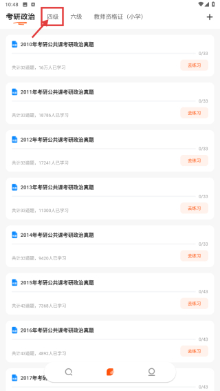 2、在文檔分類頁(yè)面,點(diǎn)擊四級(jí)分類選項(xiàng),進(jìn)入四級(jí)真題列表頁(yè)面。