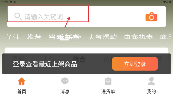 1、打開(kāi)購(gòu)物類(lèi)應(yīng)用,點(diǎn)擊頂部搜索框,進(jìn)入搜索頁(yè)面。