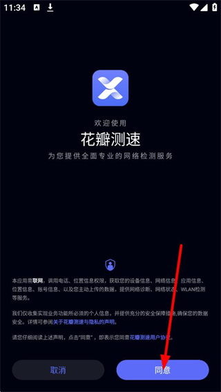 1、在APP歡迎頁面,點(diǎn)擊同意,進(jìn)入功能選擇頁面。