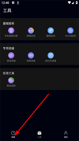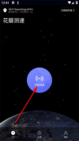 2、在功能選擇頁面,點(diǎn)擊底部測速,進(jìn)入花瓣測速頁面。