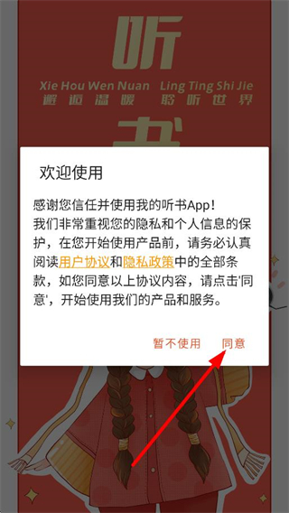 1、在隱私政策彈窗中,點擊同意,進(jìn)入APP首頁。