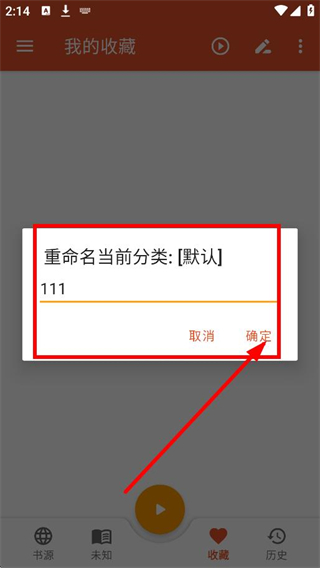 4、在重命名彈窗中,輸入分類名稱后點擊確定,完成收藏分類重命名操作。