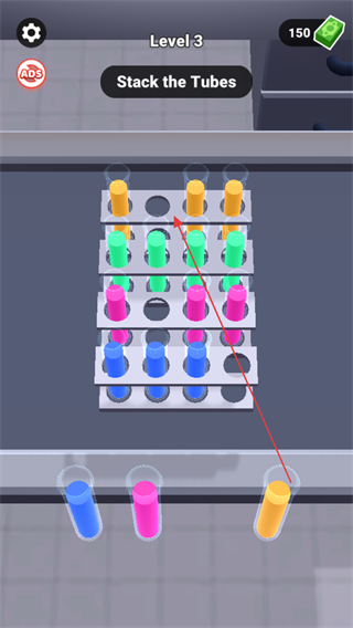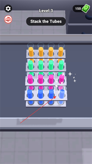 1、在Level3中,根據(jù)StacktheTubes提示,整理試管。