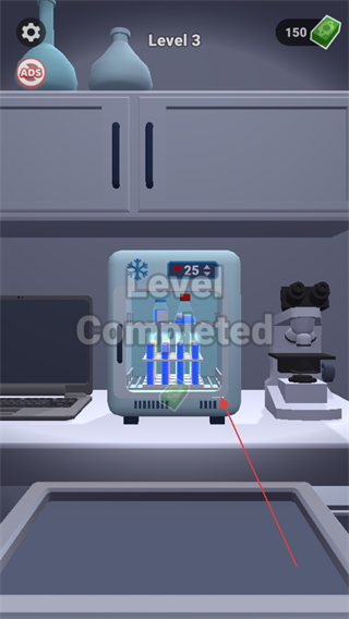 4、完成試管整理后,通關(guān)Level3,顯示LevelCompleted。