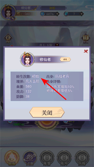 2、查看角色界面,了解自身出身歷戰(zhàn)老兵的屬性加成,出身會影響戰(zhàn)斗和修煉效率,助力針對性發(fā)展。