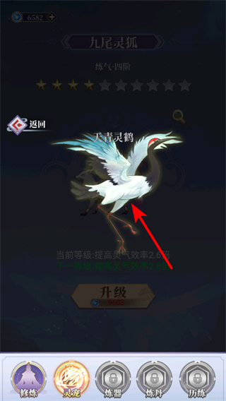 3、進入靈寵界面,培養(yǎng)靈寵如天青靈鶴,靈寵能提升修煉效率和戰(zhàn)斗能力,是修仙路上的得力助手。