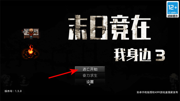 1、進入游戲主界面后,點擊逃亡開始可開啟游戲,這是進入末日生存冒險的關(guān)鍵操作。