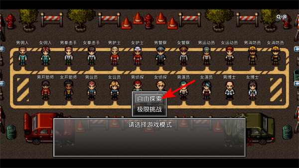 2、在模式選擇界面,點擊自由探索可進入自由探索模式,自由選擇角色和場景進行生存挑戰(zhàn)。