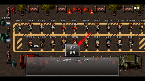 4、點擊確認(rèn)按鈕可確定角色選擇,開啟求生之旅,不同角色有不同技能和屬性,可根據(jù)喜好選擇。