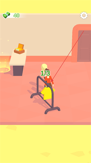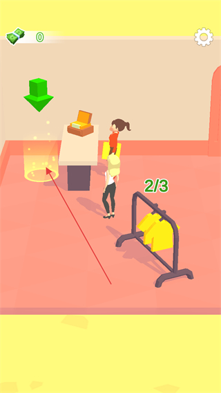 4、繼續(xù)引導(dǎo)新顧客,如前往服裝架區(qū)域,完成1/3的服務(wù)進(jìn)度,積累金錢。