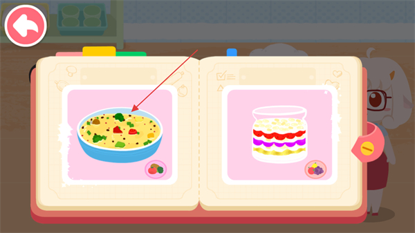 1、進(jìn)入游戲后在菜譜上可以選擇想要制作的菜品進(jìn)行點(diǎn)擊。