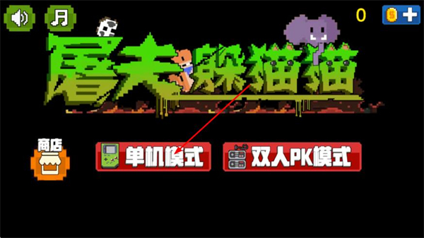 1、打開屠夫躲貓貓游戲,選擇“單機(jī)模式”進(jìn)入游戲,可根據(jù)個(gè)人喜好選擇不同的游戲場(chǎng)景和難度開始游戲。