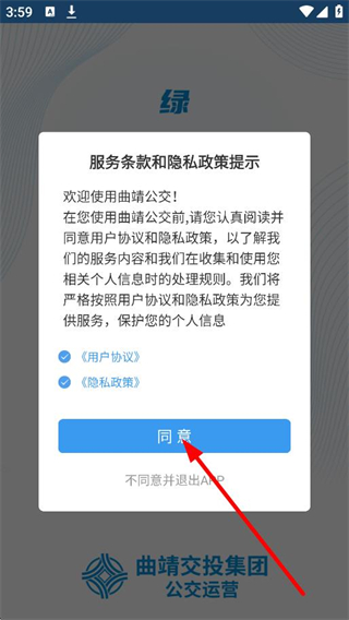 1、在服務(wù)條款和隱私政策提示彈窗中,點(diǎn)擊同意,進(jìn)入首頁(yè)。
