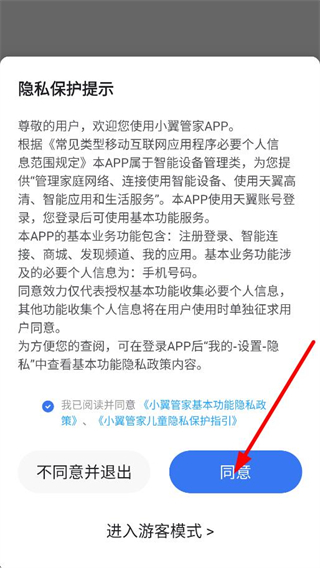 1、在隱私保護(hù)提示彈窗中,點(diǎn)擊同意,進(jìn)入登錄方式選擇頁面。