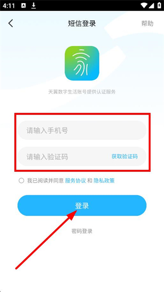 3、輸入手機(jī)號,并輸入驗證碼,點(diǎn)擊登錄,完成賬號登錄操作。
