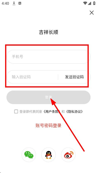 4、輸入手機號并輸入驗證碼,點擊登錄,完成賬號登錄操作。